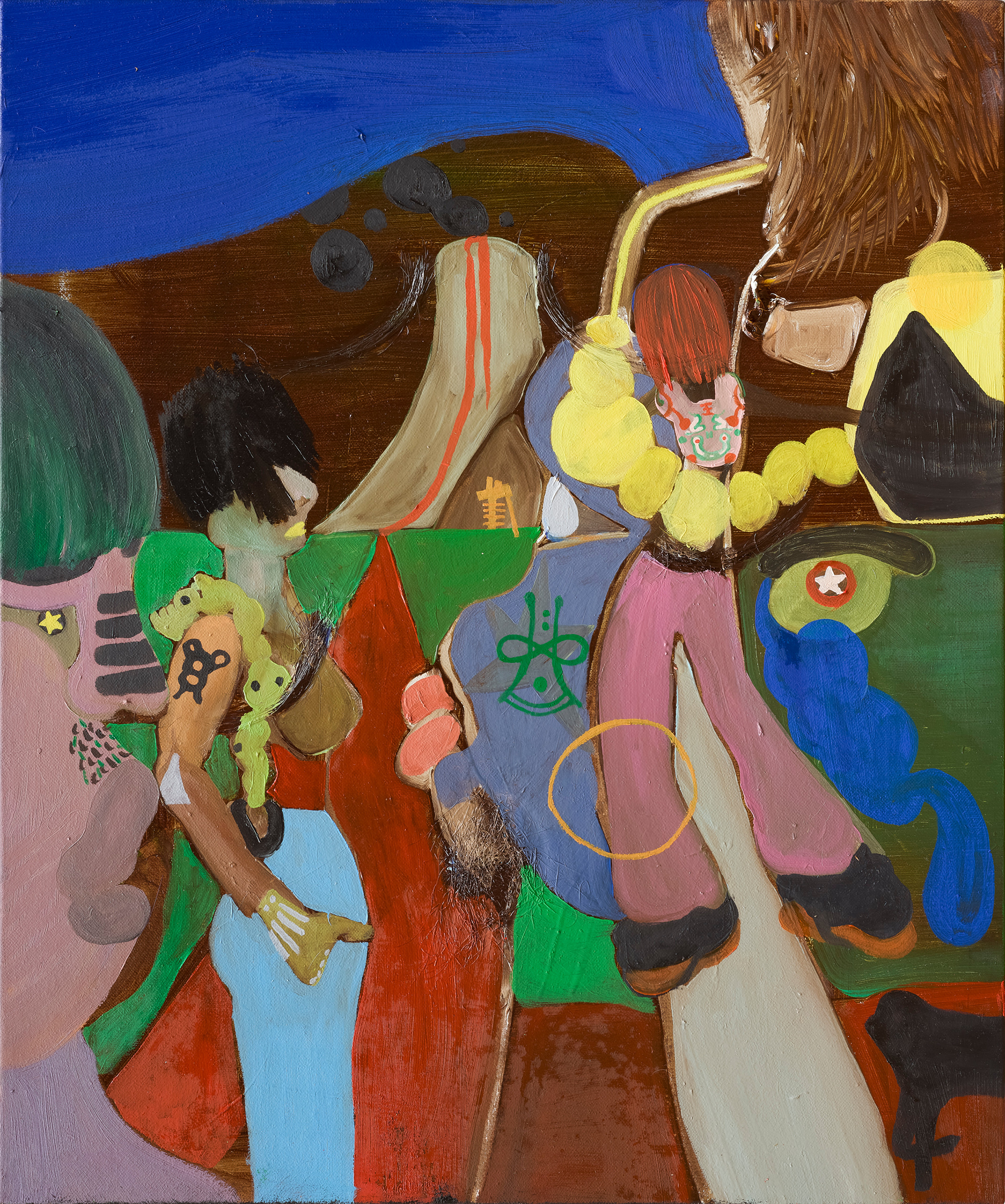 Oil on canvas with wig hair